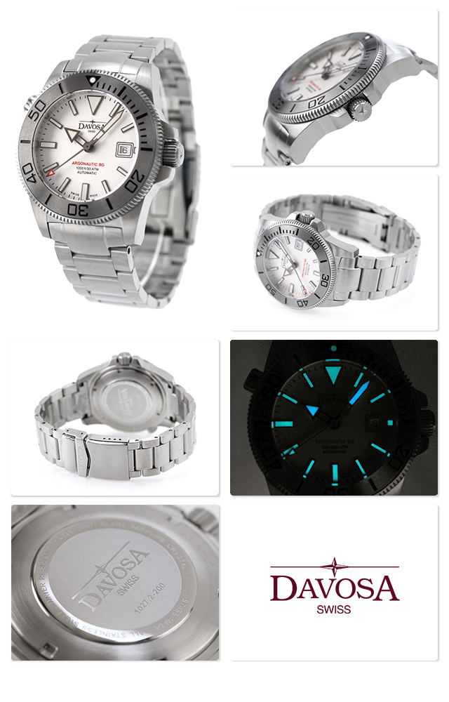 正規品 ダボサ アルゴノーティック BG ステンレス スイス製 メンズ 腕時計 161.528.10 DAVOSA Argonautic BG アナログ シルバー ◆DAVOSA(ダボサ)は1989年、Hasler(ハスラー)家が立ち上げた時計ブランド。「スイスメイドにこだわり、外装・機構の細部にこだわり、そしてそのこだわった商品を手ごろな価格で提供する」という理念を掲げています。クォーツショックをも生き抜き、有名な高級ブランド時計の製作に携わるなど100年以上に渡って培われたHasler(ハスラー)家の高い時計製造技術が詰まったDAVOSA腕時計は、時計初心者から時計愛好家まで幅広い指示を集めています。 2017年に誕生した「アルゴノーティック BG」が2022年、装いを新たに再始動しました。ベゼルの外周とクラウンには、快適な操作が可能となるようによりエッジの利いた細かい溝が施されています。 機械式腕時計