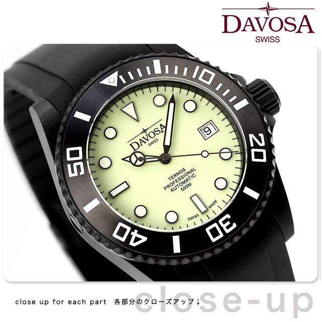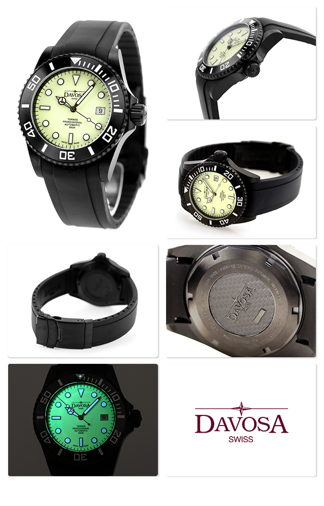 正規品 ダボサ テルノス プロフェッショナル メガリュウム 数量限定モデル スイス製 メンズ 腕時計 161.583.10 DAVOSA Ternos Professional Megalume アナログ ベージュ ブラック 黒 ◆DAVOSA(ダボサ)は1989年、Hasler(ハスラー)家が立ち上げた時計ブランド。「スイスメイドにこだわり、外装・機構の細部にこだわり、そしてそのこだわった商品を手ごろな価格で提供する」という理念を掲げています。クォーツショックをも生き抜き、有名な高級ブランド時計の製作に携わるなど100年以上に渡って培われたHasler(ハスラー)家の高い時計製造技術が詰まったDAVOSA腕時計は、時計初心者から時計愛好家まで幅広い指示を集めています。 「テルノス プロフェッショナル メガリュウム」が世界限定500本で登場。文字盤の表面全体に夜光塗料を使用し、日中はベージュの色調、暗闇では日中に蓄光されたグリーンの光が浮かび上がります。 機械式腕時計