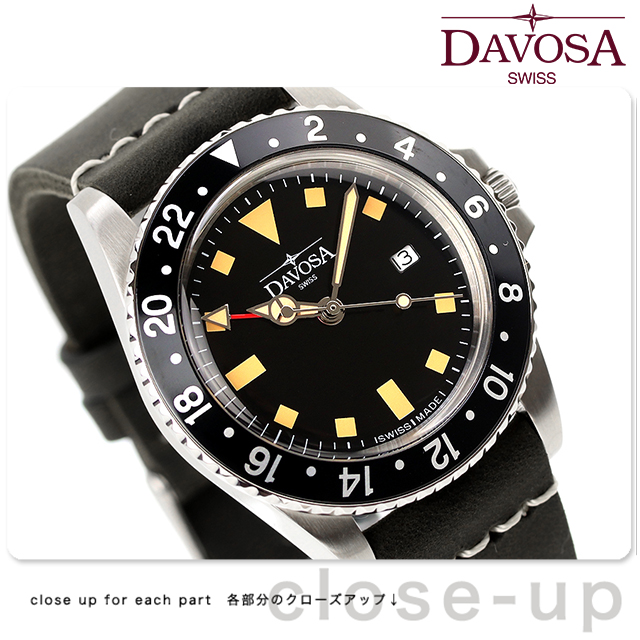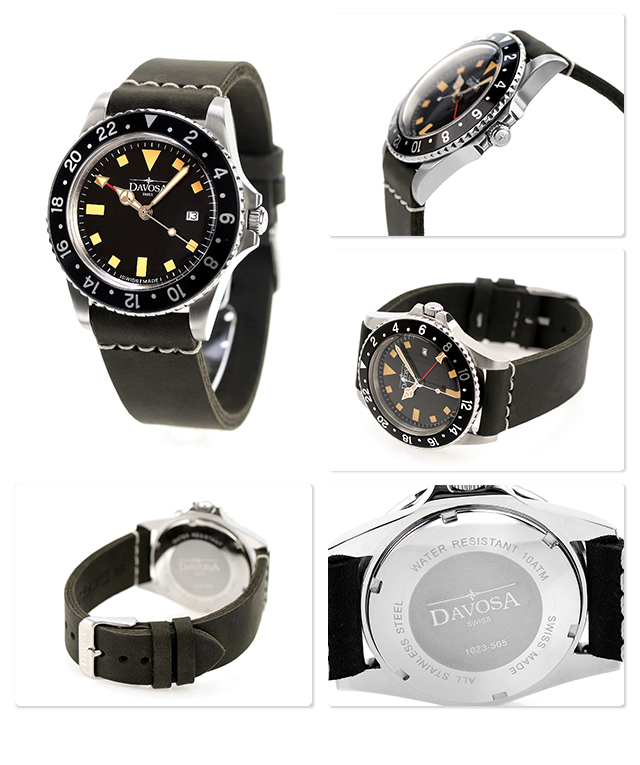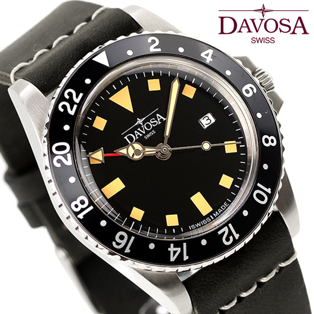 正規品 ダボサ ヴィンテージ ダイバー スイス製 メンズ 腕時計 162.500.55 DAVOSA Vintage Diver アナログ ブラック ダークグレー 黒 ◆DAVOSA(ダボサ)は1989年、Hasler(ハスラー)家が立ち上げた時計ブランド。「スイスメイドにこだわり、外装・機構の細部にこだわり、そしてそのこだわった商品を手ごろな価格で提供する」という理念を掲げています。クォーツショックをも生き抜き、有名な高級ブランド時計の製作に携わるなど100年以上に渡って培われたHasler(ハスラー)家の高い時計製造技術が詰まったDAVOSA腕時計は、時計初心者から時計愛好家まで幅広い指示を集めています。 2023年、新たにクォーツのコレクションが加わりました。サンドカラーのインデックスはマットで落ち着いた印象のアルミベゼルと抜群の相性を発揮します。赤いGMT針がアクセントになっています。