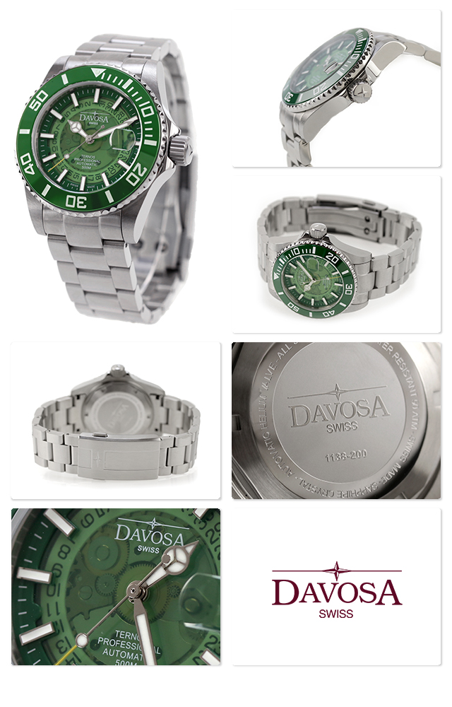 ダボサ テルノス プロフェッショナル ネビュラス ミスティックグリーン 自動巻き 腕時計 ブランド メンズ オープンハート DAVOSA 161.535.70 アナログ グリーン スイス製
