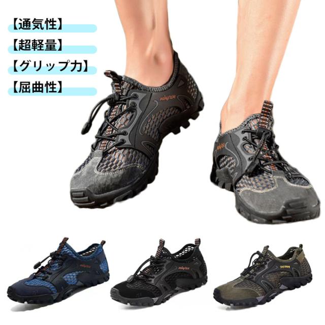 マリンシューズ 水陸両用 メンズ アウトドア 岩場 大人 アクアシューズ フィットネスシューズ 靴 保護 中敷き 軽量 快適 排水機能 スポーツサンダル 父の日