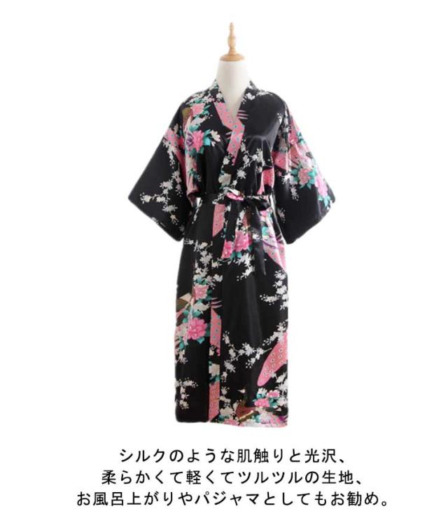 着物 ガウン 和風 浴衣 ハッピーローブ ロング丈 法被 夏 シルクタッチ 5分袖 花柄 サテン ナイトガウン バスローブ 薄手 部屋着 ルームウェア ロング サテン浴衣 和服 レディース パジャマ ランジェリー 和柄 夏祭り 羽織物 送料無料