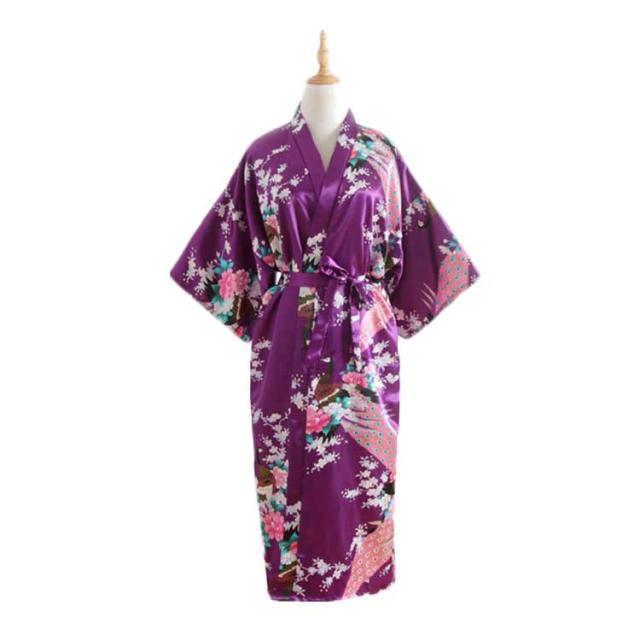 | 外国人への贈り物に最適♪ 外国人向けにローブ感覚で簡単に着られるお洒落なハッピーローブ。 羽織って、ベルトを結ぶだけ。ローブ感覚で簡単に着られる着物ガウン。 シルクのような肌触りと光沢、柔らかくて軽くてツルツルの生地、お風呂上がりやパジャマとしてもお勧め。 孔雀と花のゴージャスな柄、舞台やステージの衣装にも◎ おうち時間のリラックスタイムや和風のコスプレ、外国のお友達へのプレゼントなどにも。 | |