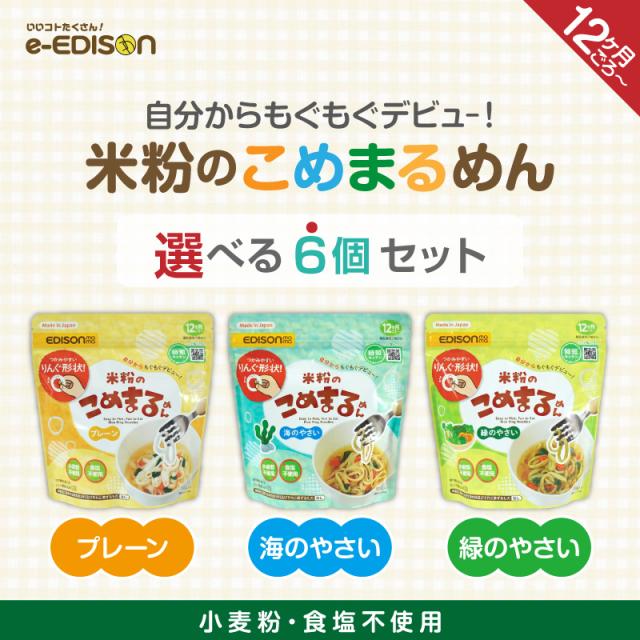 EDISONmama 【こめまるめん 選べる6個セット】 ベビーフード 無添加 12ヶ月〜 国産米粉100% ベビーうどん リング形状うどん うどん麺 丸いうどん アレルゲン28品目不使用 グルテンフリー 食塩不使用 時短キッチン うどん 乾麺 リングうどん 麺のカット手間なし!