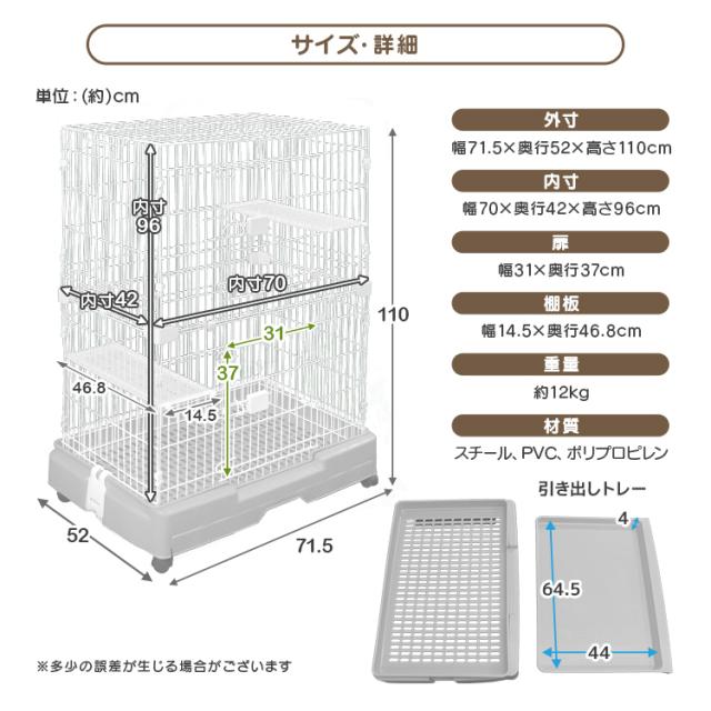 猫 ケージ 2段 キャットケージ 引き出しトレー ペットケージ ケージ ゲージ 猫 ハウス 猫ケージ 猫ゲージ 大型 おしゃれ おすすめ ケージ飼い 室内 多段 キャスター付き 送料無料