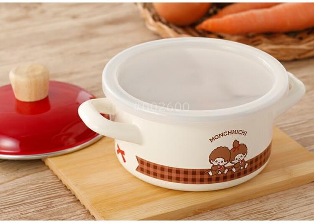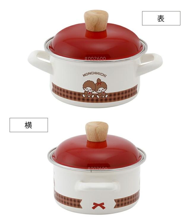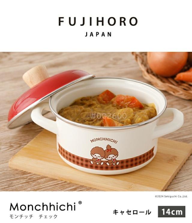 【 富士ホーロー 公認商品 】小さい 両手鍋 IH対応 14cm モンチッチ 昭和レトロ キャセロール 保存用フタ付き ih 北欧 モンチッチ チェック MNC-14W (14cm) IH200V 蓋付き IH 鍋 一人用 フタ 小さめ 煮込み鍋 蓋付き 琺瑯 ほうろう 両手鍋 14cm ガス火 赤 レトロ