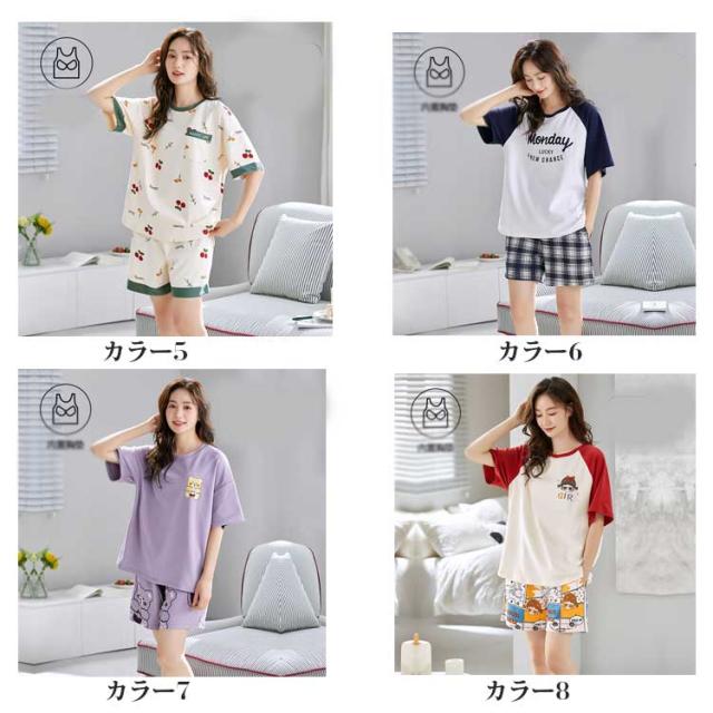 半袖パジャマ 夏用パジャマ 可愛いパジャマ パジャマ レディース 半袖 ルームウェア 夏 パジャマ 夏用パジャマ ばくね かわいい M L XL 2XL 疲れが取れ るパジャマ 襟なし 夏 部屋着 綿 上下セット 大人用 パジャマ 大きい 母の日 送料無料