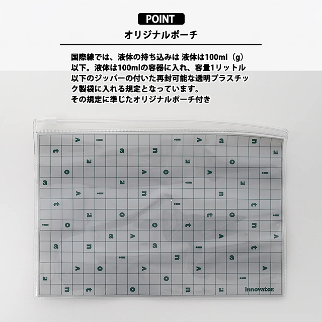 国際線の液体持ち込み規定に準じたオリジナルポーチ付きです。