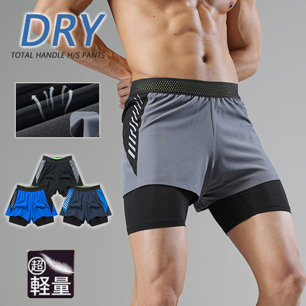 ポイント超超祭 ハーフパンツ メンズ 吸水速乾 ショートパンツ タイツ付き ポケット 半ズボン 短パン ルームウェア 部屋着 スポーツ フィットネス ウェア