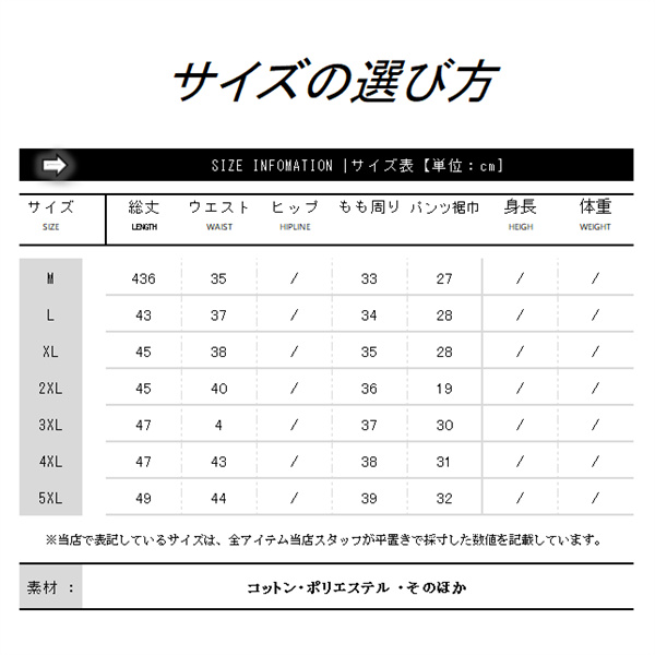 ※基本的に、XL・LL・2Lのサイズはすべて同じサイズです。