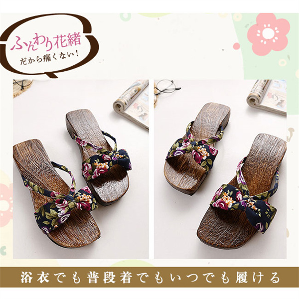 ポイント超超祭 下駄 レディース サンダル 浴衣 下駄 花柄 ローヒール 女性用 厚底 スリッパ サンダル 夏祭り 滑り止め 痛くない 可愛い アウトドア