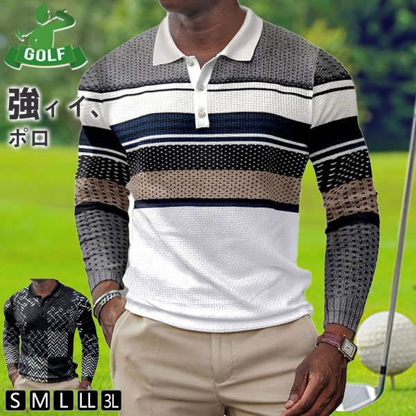 ポロシャツ メンズ ゴルフウェア トップス 大きいサイズ 長袖 ゴルフシャツ トレンド おしゃれ スポーツ 春秋 ゴルフ カジュアルシャツ 紳士服