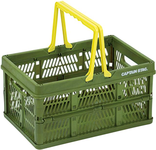 キャプテンスタッグ CAPTAIN STAG アウトドア 取っ手付FDコンテナ L グリーン カゴ ケース 折りたたみ 持ち運びラクラク 簡単組立 コンパクト収納 保管 運搬 キャリー キャンプ ピクニック レジャー UL1012
