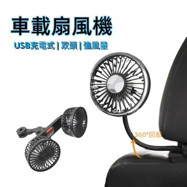車載扇風機 双頭 車載ファン 車内 扇風機 小型 強風量 USB充電式 3段階風量調節可能 伸縮式 角度調節 360°回転 省エネ 静音 簡単インストール 夏対応 熱中症対策