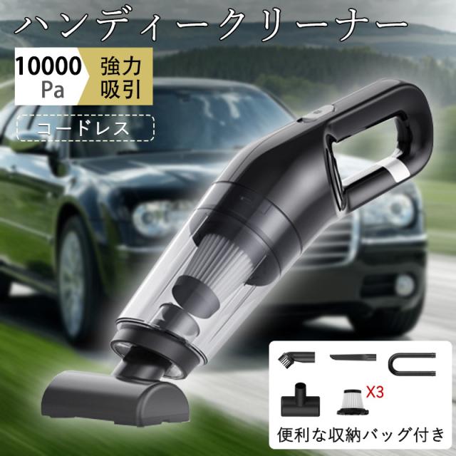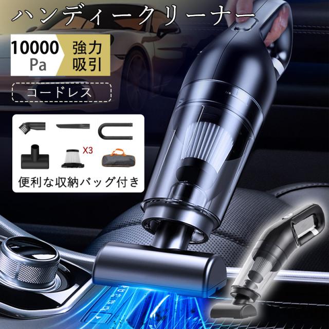 ハンディクリーナー 掃除機 強力 コードレス 10000pa USB充電式 パワフル吸引 車載掃除機 車 車内両用 静音設計 家庭