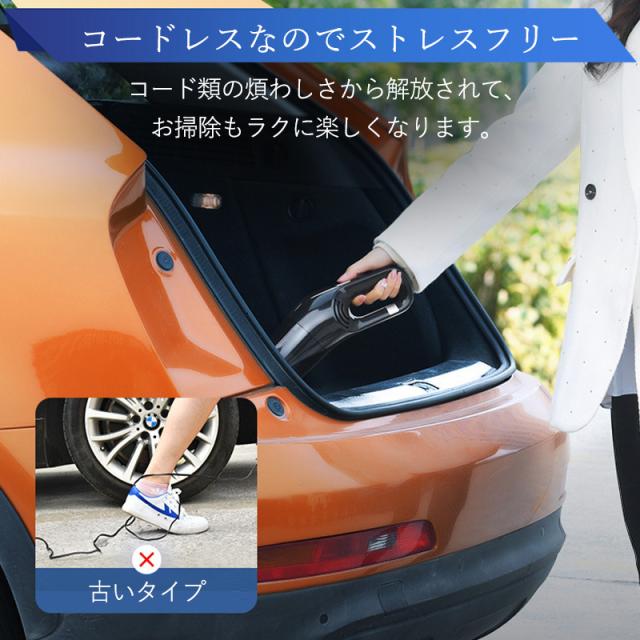 コードレスで、掃除する時にゴチャゴチャしているコードからの邪魔がなく、愛車のクリーニングをスムーズに行えます。