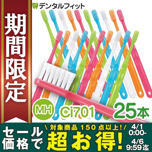 【★50%OFF 4/6 9:59迄】【メール便選択で送料無料】歯ブラシ Ci 701 ラウンド毛 MHややかため 25本セット Ciメディカル 歯科医院専売