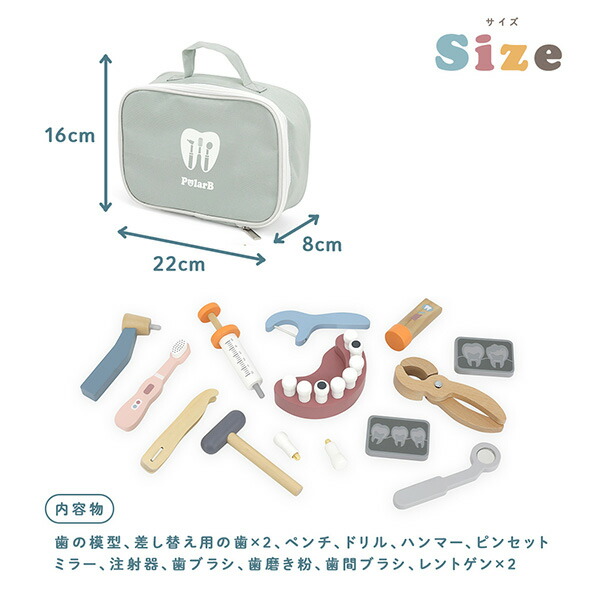 デンタルセット (対象3歳から) 木製 おもちゃ 歯医者さんごっこ TYPR44202 木 知育玩具 赤ちゃん ベビー お医者さんごっこ 歯ブラシ ドリル 北欧 プレゼント おしゃれ 出産祝い ポーラービー Polar B 【送料無料】