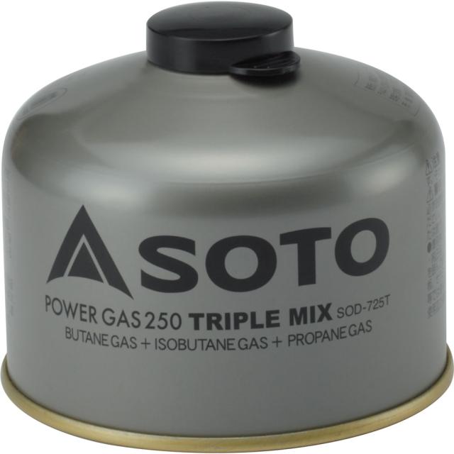 ソト SOTO アウトドア パワーガス250トリプルミックス SOD-725T 燃料 ガスカートリッジ OD缶 イソブタン ノルマルブタン プロパン 登山 トレッキング キャンプ 災害対策 SOD725T