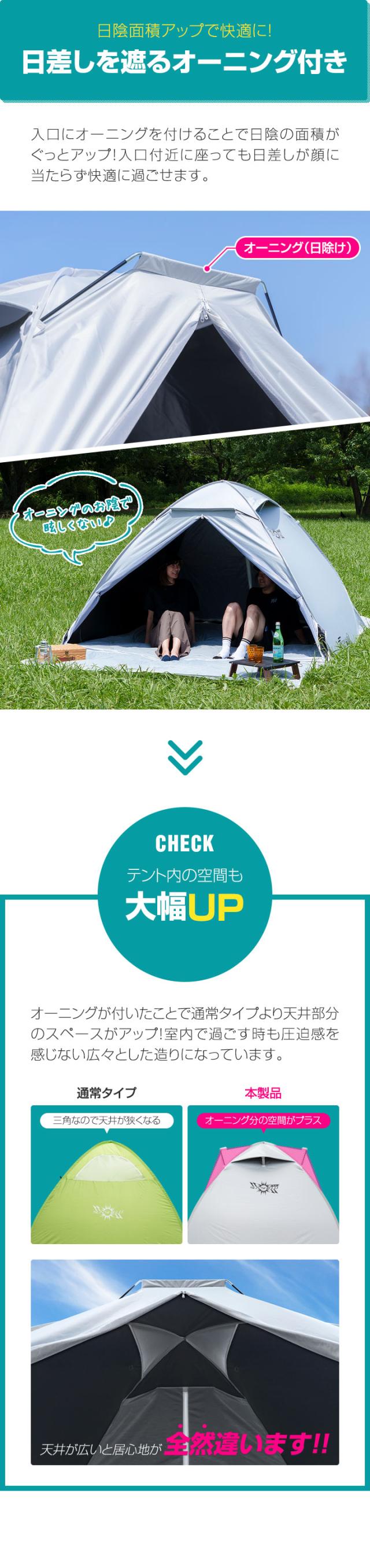 | 付属品: ・テント本体×1 ・収納バッグ×1 ・ペグ×12 ・ロープ×4 ・オーニングポール×2 ・取扱説明書(日本語) |