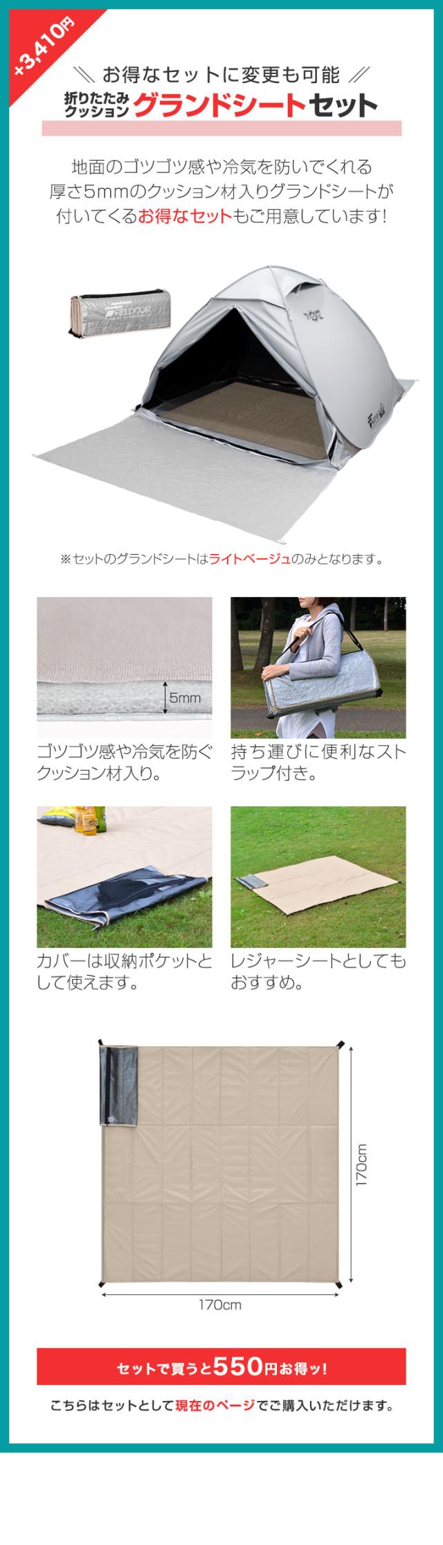 | ※[店舗管理用 URL]a07184 ※[品番]【テント本体のみ/グレー:a07184】【テント本体のみ/ライトベージュ:a06816】【グランドシート付セット(+3410円)/グレー:a04651】【グランドシート付セット(+3410円)/ライトベージュ:a04878】 |