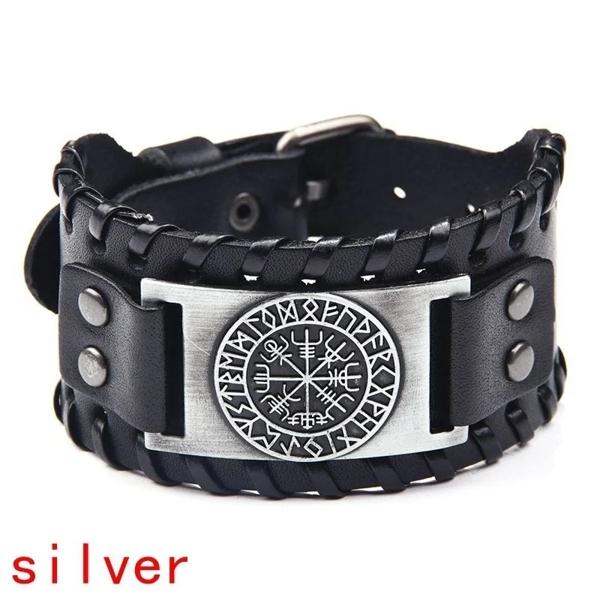 男性用の大きな革のブレスレット 海賊のコンパス 金属 手首 新しいトレンド パーティーアクセサリー