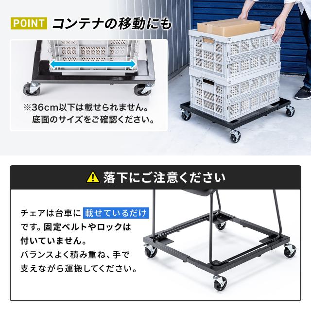 折りたたみ椅子 運搬用台車 スタッキングチェア 幅調整可能 50kg耐荷重 キャスター付[150-SNCCART3]