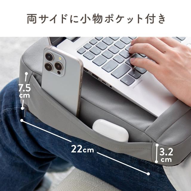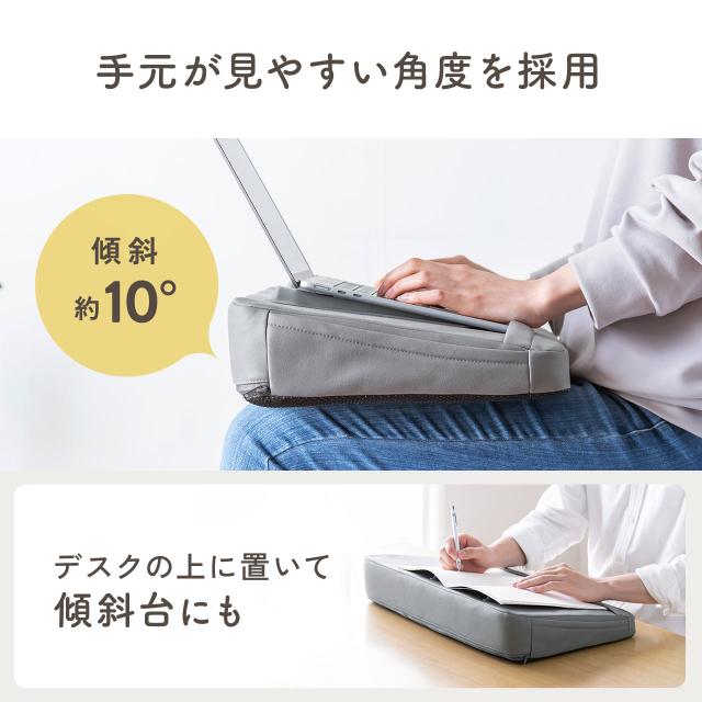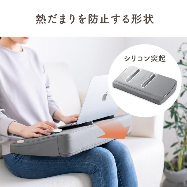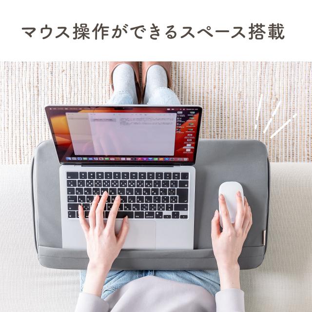 膝上テーブル 軽量 持ち運び クッション タブレット ノーパソコン マウス操作対応 洗濯可能 幅54cm[200-HUS018GY]