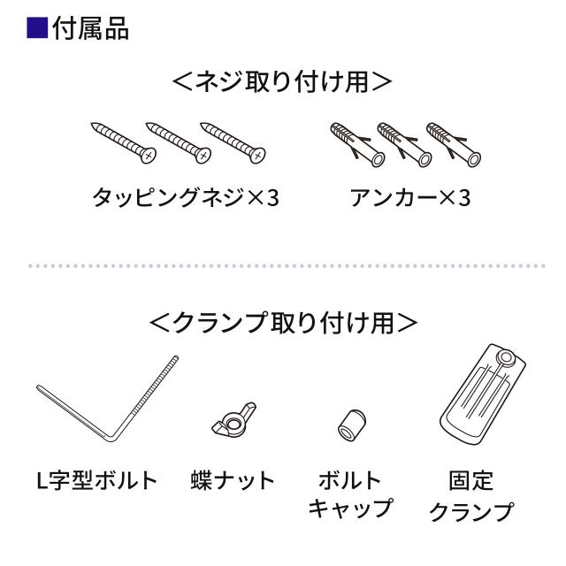 ●取付けはクランプ固定、本体の壁側に付属しているネジで設置、ベンド穴を使用してバンド(別売)取付も可能です。