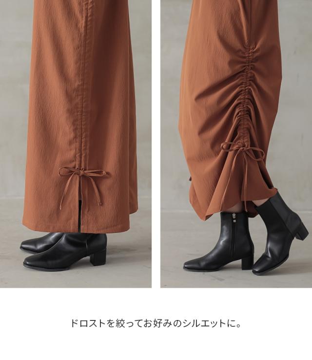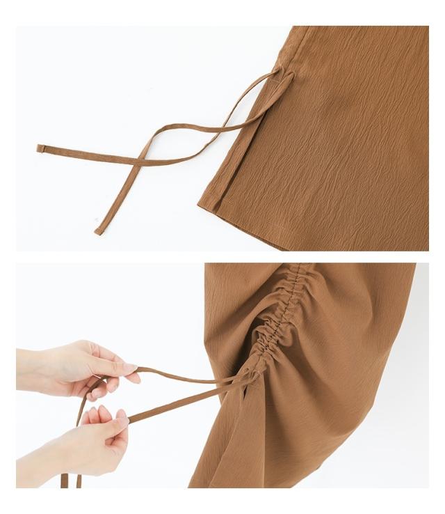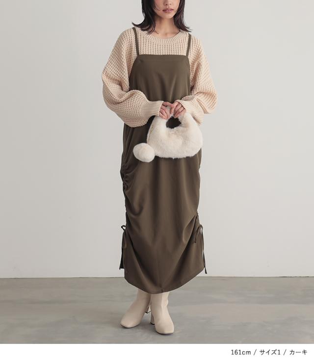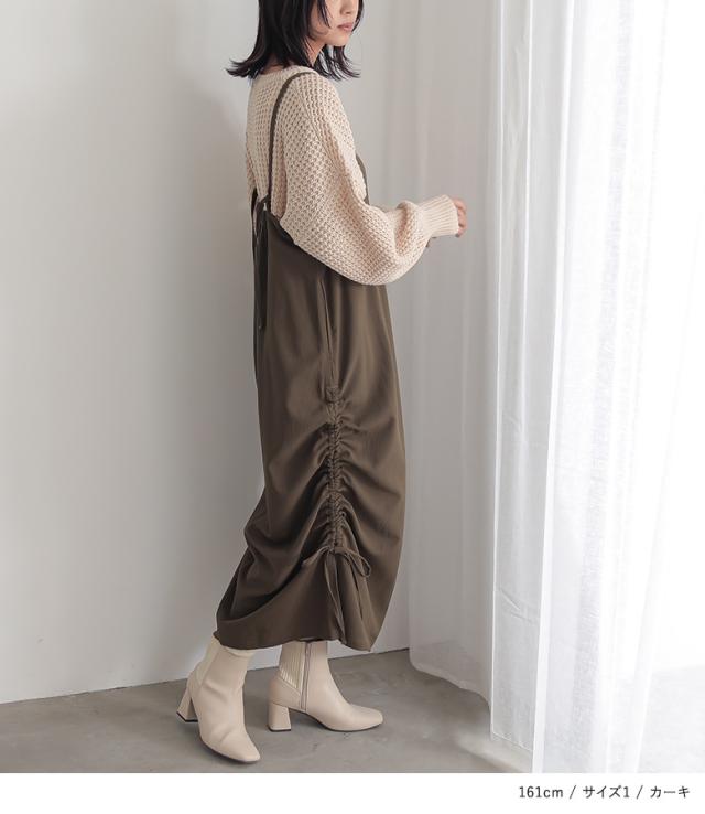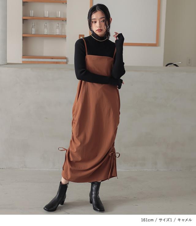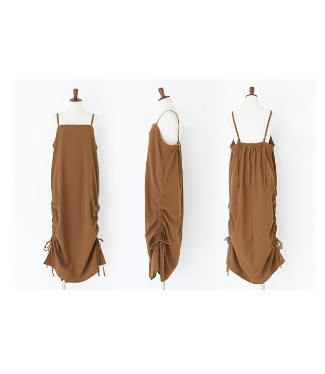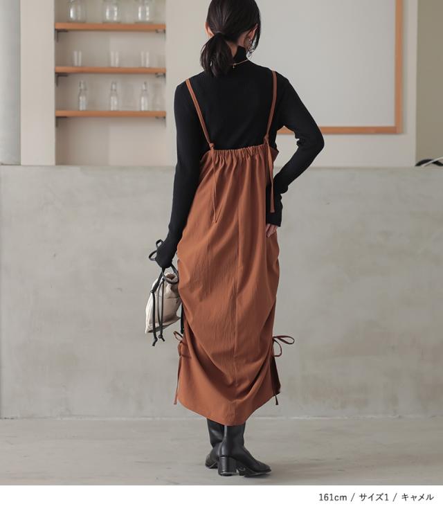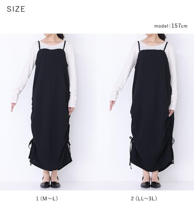 ■デザイン 両サイド下部のドロストデザインで、シルエットに変化をつけて着こなしを楽しめるキャミソールワンピース。背中側はゴム仕様で楽に着用でき、肩紐は結ぶことで簡単に着丈の調節が可能です。薄手の素材と落ち着いたカラー展開で、暑い季節はもちろん、秋あたりまでご着用いただけます。両脇には便利なポケット付き。 ■素材 シボ感が表情豊かな薄手の生地で、ストレッチ性があり快適な着心地。さらっとした肌触りの透けにくい生地感です。 ※一点一点シボ感の出方が異なります。予めご了承の上ご購入いただきますようお願いいたします。 ■コーディネート 暑い時期には半袖Tシャツ、暑さが和らぐ季節には長袖のトップスなど、合わせるアイテムを変えて長く着回していただけます。裾のドロストでシルエットを変えて、足元に軽さを出した着こなしがおすすめです。 |