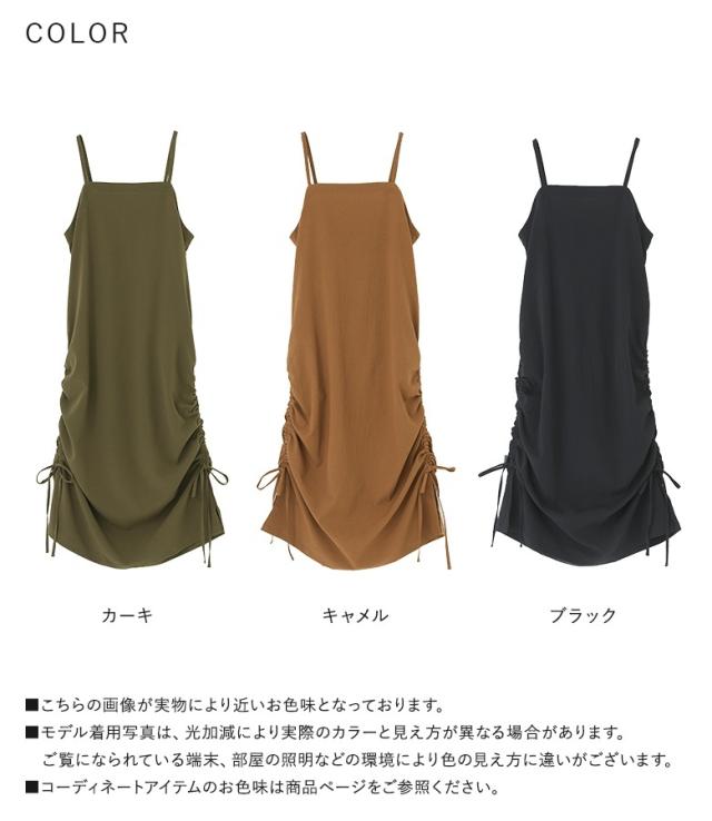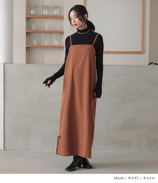 『ドロストキャミワンピース』※メール便可※【10】[ロング ワンピース レディース キャミソール ノースリーブ ギャザー 無地 肩紐 リボン レイヤード 重ね着 ゴムギャザー シボ感]
