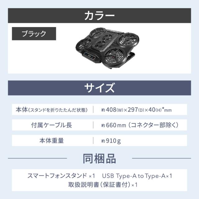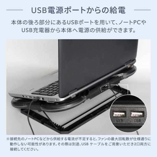 ■注意事項/備考:ファン使用時、接続先のノートPCなどから供給する電流が不足すると、ファンの最大回転数が仕様通りに動作しない可能性があります。その際は別途、USB Type-A to USB Type-A(オス - オス)ケーブルをご用意いただき、2口両方に接続してください。