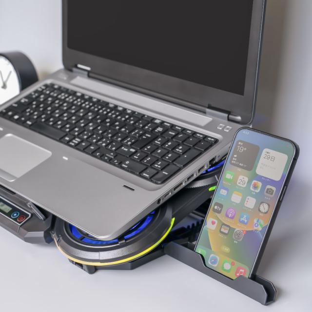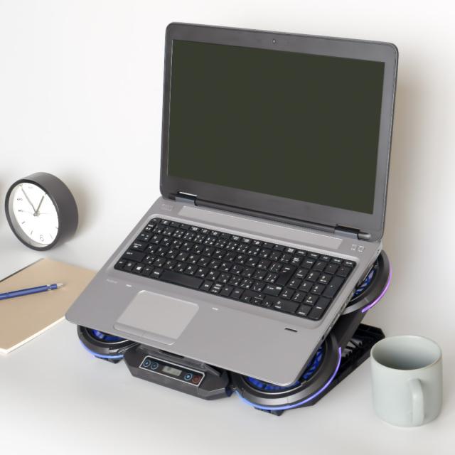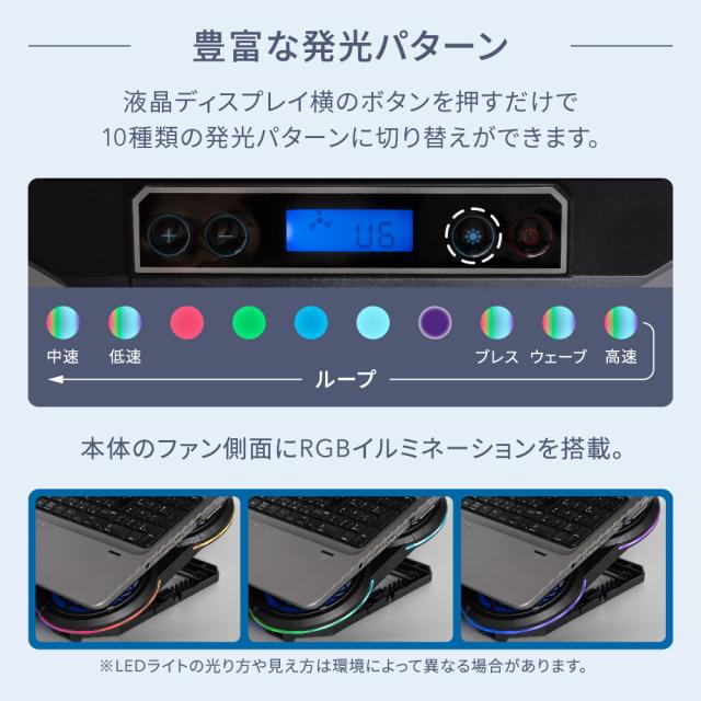ゲーミング ノートPCクーラー ファン6基搭載 RGBイルミネーション対応 液晶ディスプレイ搭載
