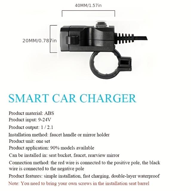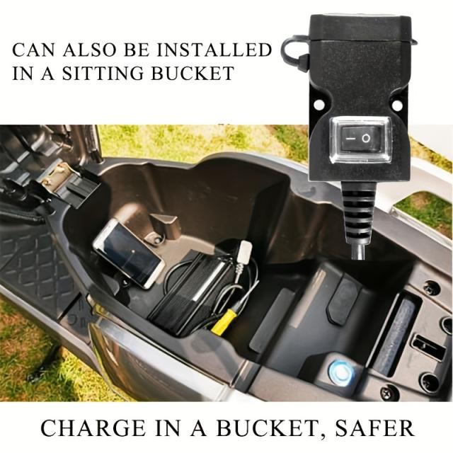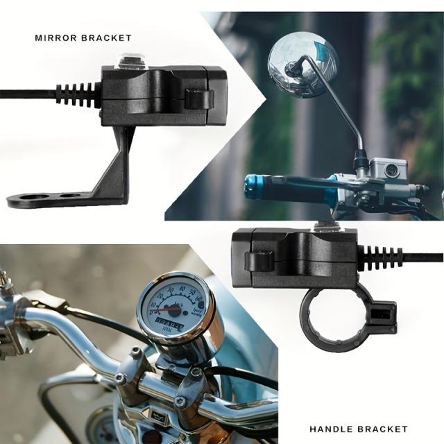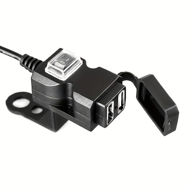 防水バイクハンドルバーデュアルUSB充電器、ミラーマウントとスイッチ付き - すべての電話モデルに対応する12V-24V電源コンセント