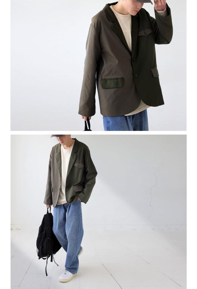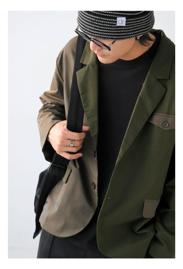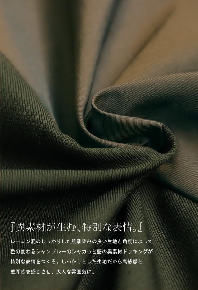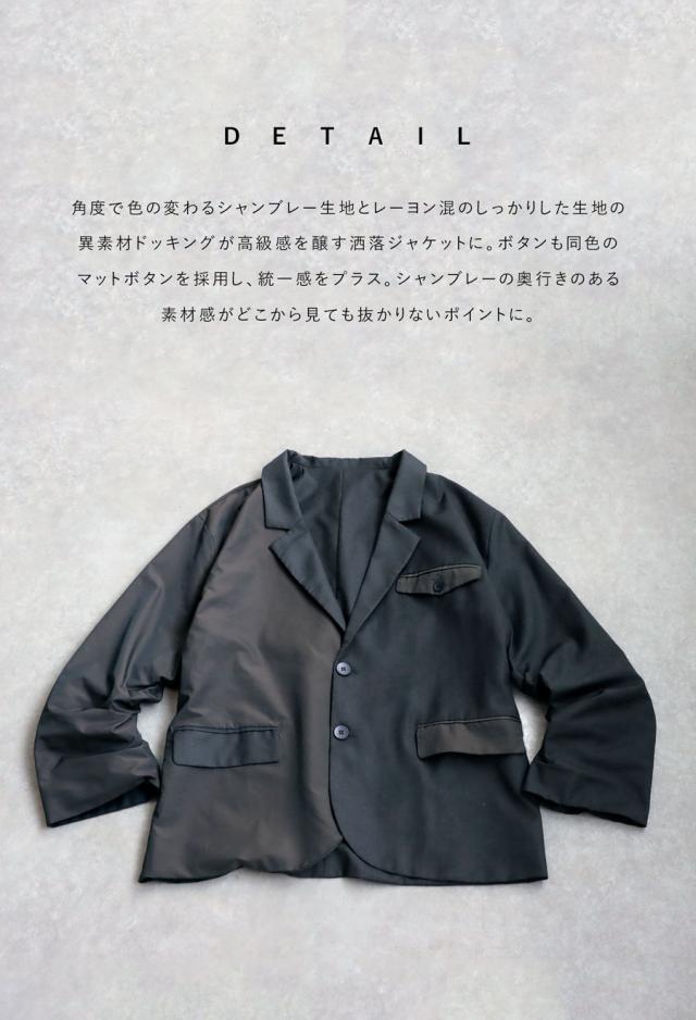 奥行きのあるシャンブレー生地を使用した、即気映えるドッキングジャケット。