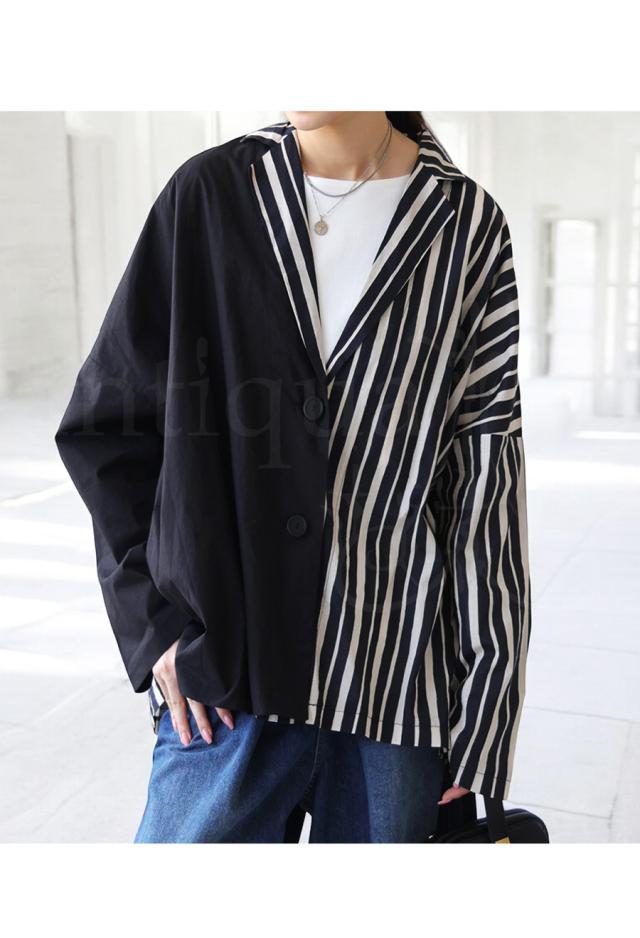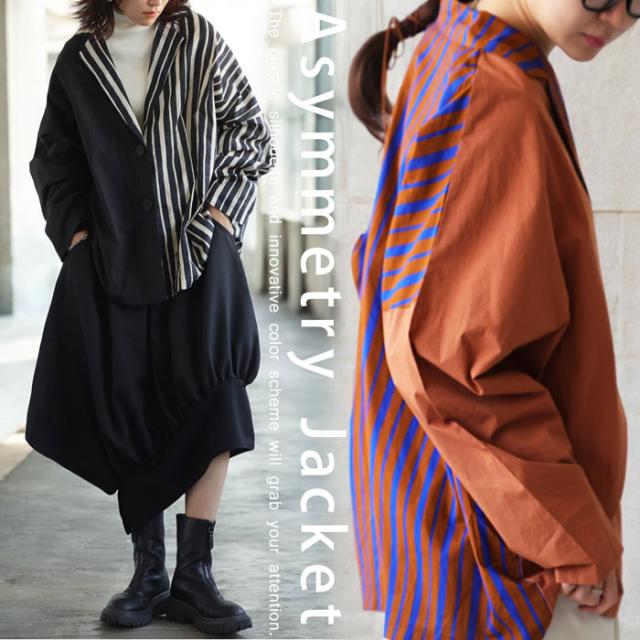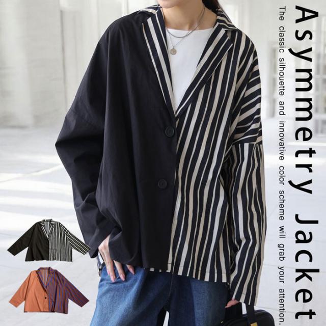 【検索ワード】アシンメトリージャケット ジャケット レディース アウター 羽織り セットアップ 長袖 テーラードジャケット 襟付き 綿100 ストライプ柄 柄ジャケット 柄 無地 切り替え ドッキング アシメ アシンメトリー 前開き ボタン ゆったり シンプル きれいめ すっきり ラフ カジュアルジャケット 軽アウター ライトアウター 薄手 ナチュラル 綿 コットン レイヤード 重ね着 ハリ感 大きめ 大きいサイズ ユニセックス antiqua treecafe アンティカ ツリーカフェ 大人 おしゃれ 10代 20代 30代 40代 50代 60代 春 秋 冬 お洒落 カジュアル かわいい かっこいい あんてぃか