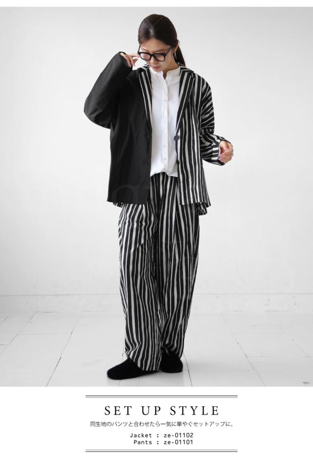 ze-01102 羽織り セットアップ 長袖 テーラードジャケット 襟付き 綿100 柄 無地 切り替え アシメ ゆったり シンプル すっきり ラフ 軽アウター 薄手 重ね着 大きめ ユニセックス