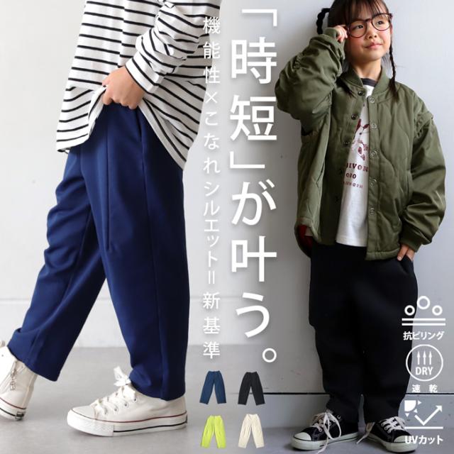 tya-00081 キッズ 子供服 男の子 女の子 ジュニア 低学年 高学年 ボトムス セットアップ テーパードパンツ ロング 立体 ストレッチ ポリ裏毛 シンプル 楽ちん リンクコーデ おそろ