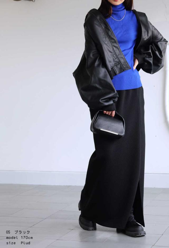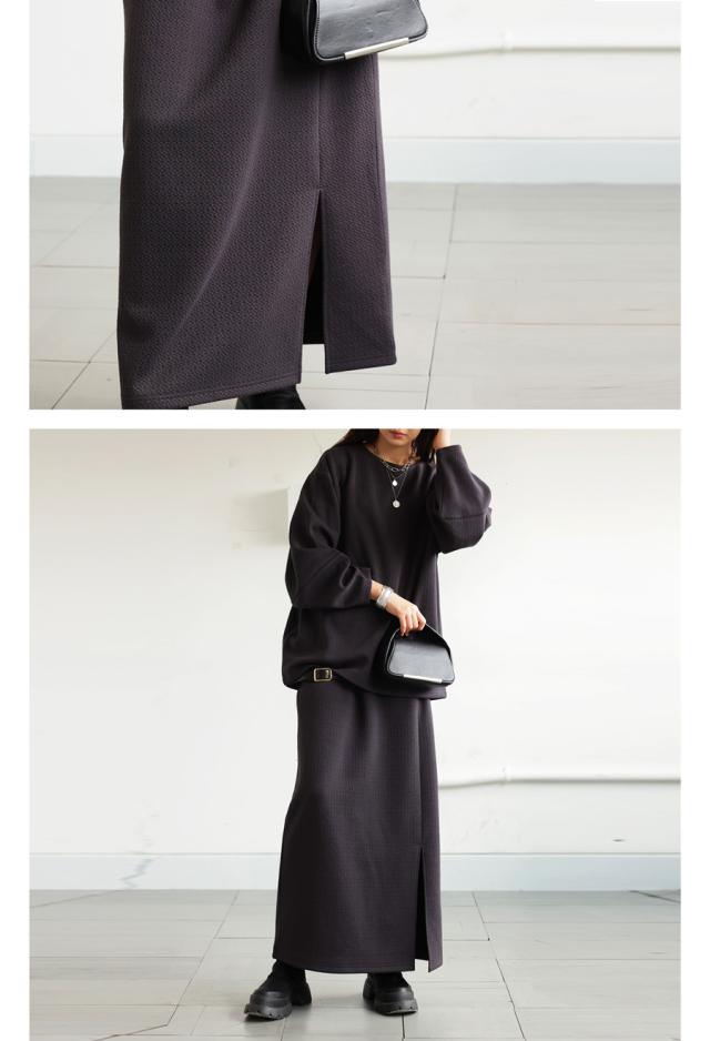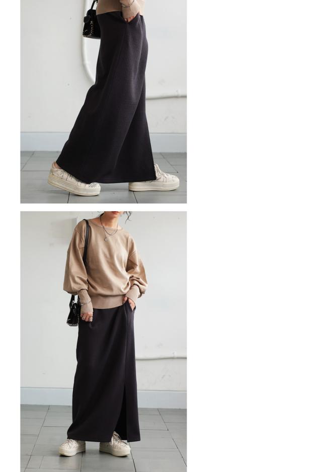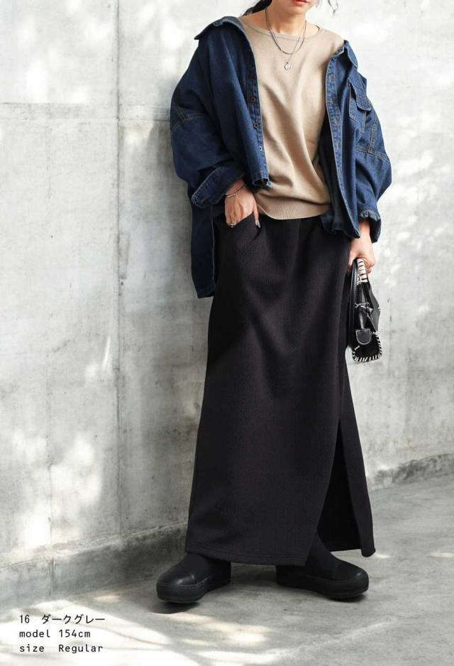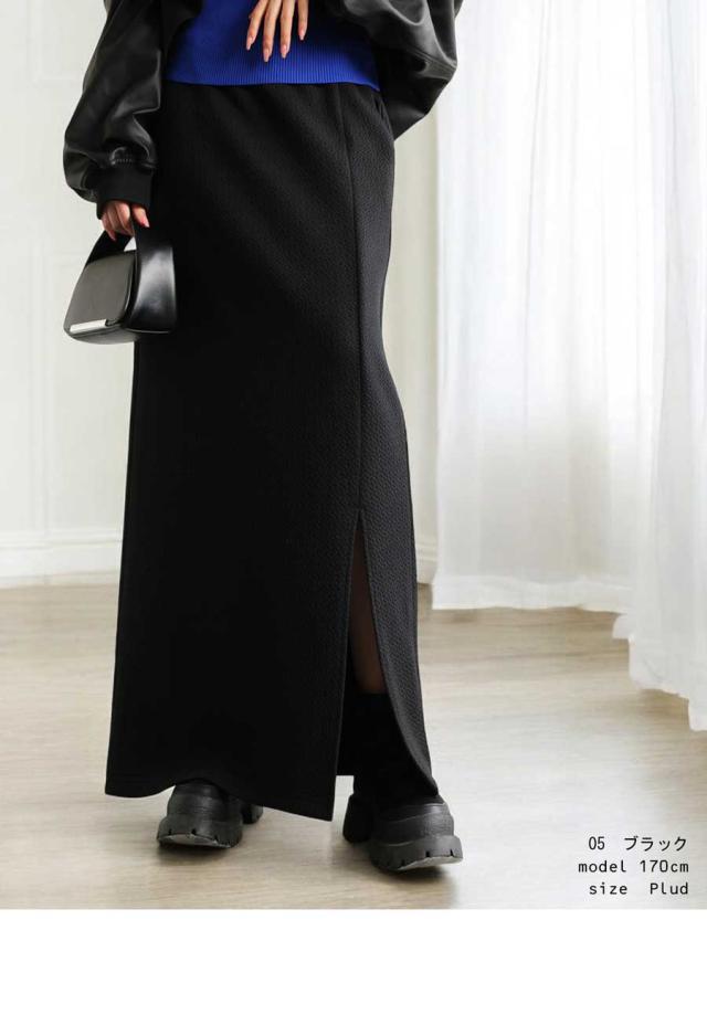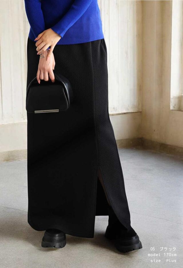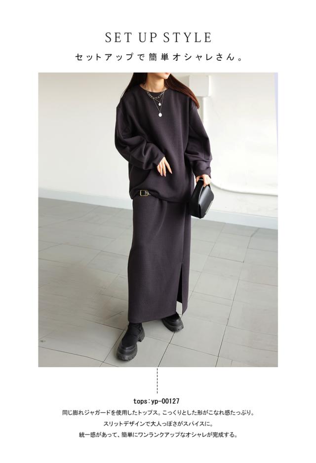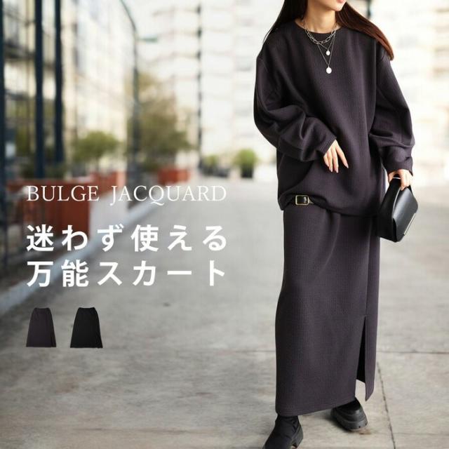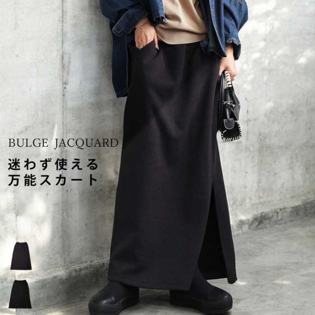 yp-00128 ボトムス ロング ジャガード ふくれ織り ロングスカート Aライン ゆったり 高級感 きれいめ 上品 モード ゆったり スリット 着痩せ 細見え 前フラット 後ろゴム 大きめ
