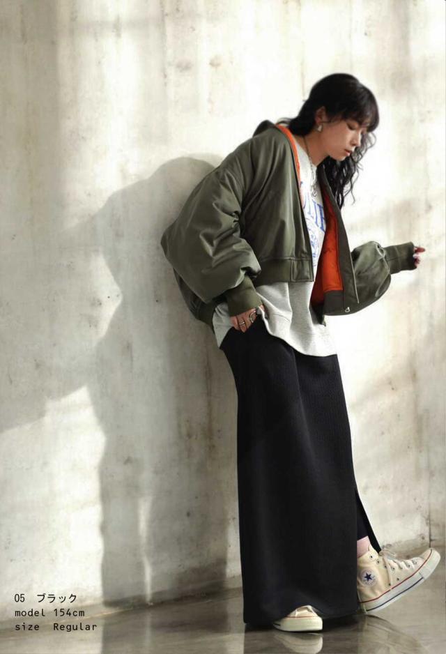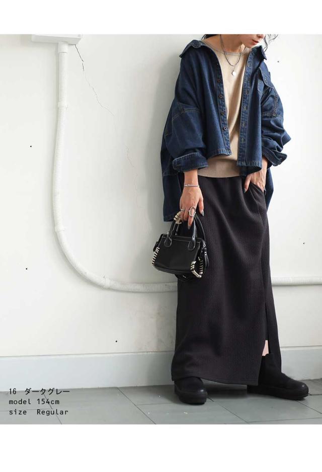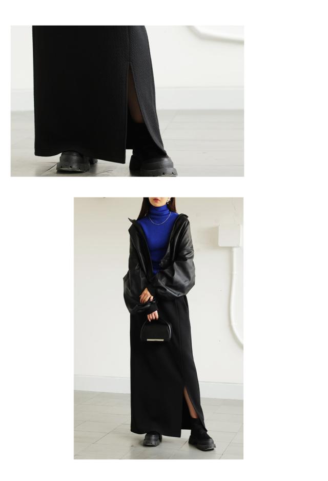 スリットの抜け感でスタイルアップも叶う、何にでも合わせやすい万能アイテム。