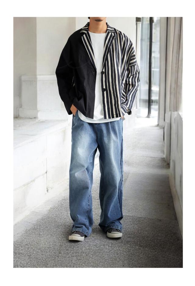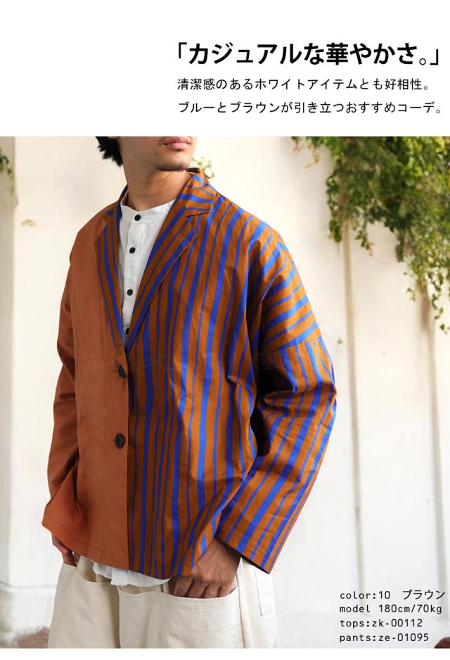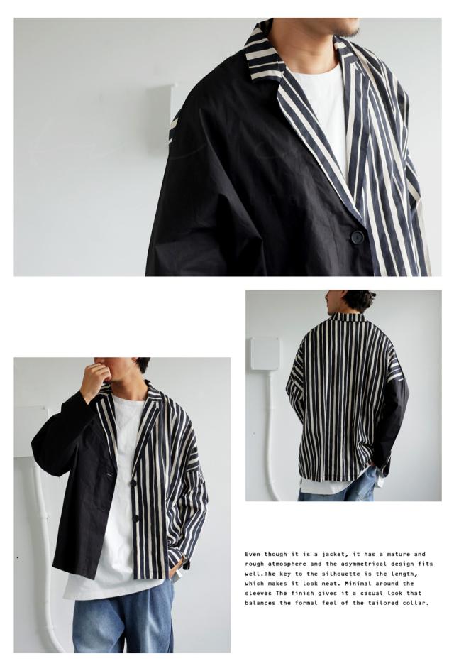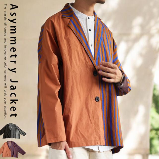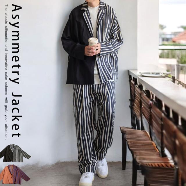 【検索ワード】アシンメトリージャケット ジャケット メンズ アウター 羽織り セットアップ 長袖 テーラードジャケット 襟付き 綿100 ストライプ柄 柄ジャケット 柄 無地 切り替え ドッキング アシメ アシンメトリー 前開き ボタン ゆったり シンプル きれいめ すっきり ラフ カジュアルジャケット 軽アウター ライトアウター 薄手 ナチュラル 綿 コットン レイヤード 重ね着 ハリ感 大きめ 大きいサイズ ユニセックス 男性 男 かっこいい カッコイイ カジュアル antiqua treecafe アンティカ ツリーカフェ メンズファッション トレンド コーディネート 通販 ブランド 春 秋 冬 あんてぃか