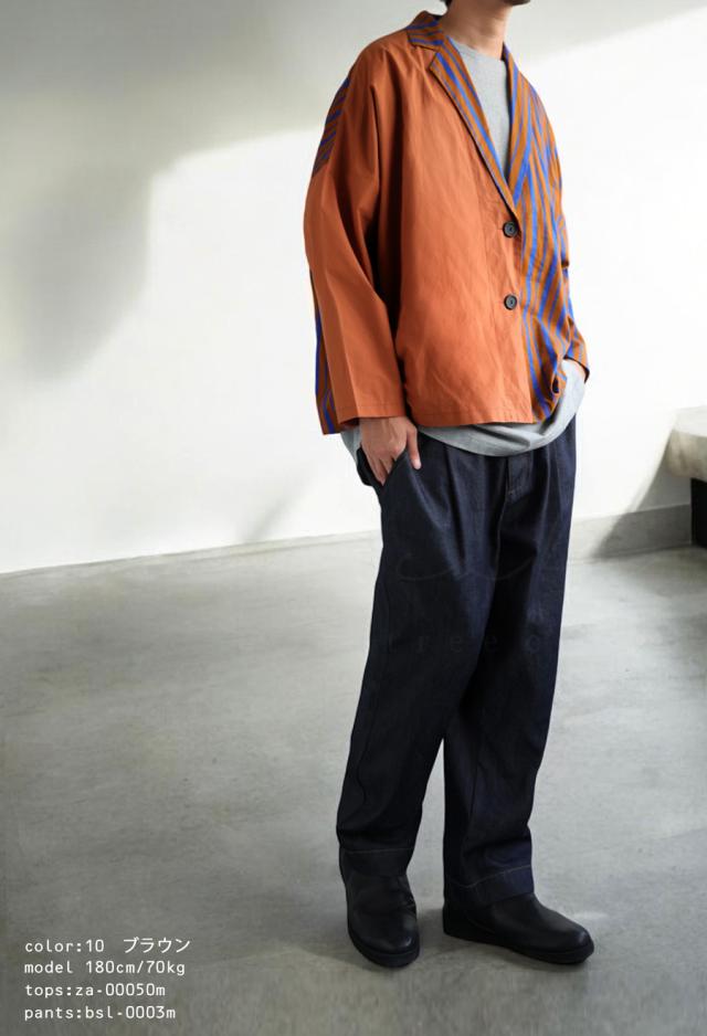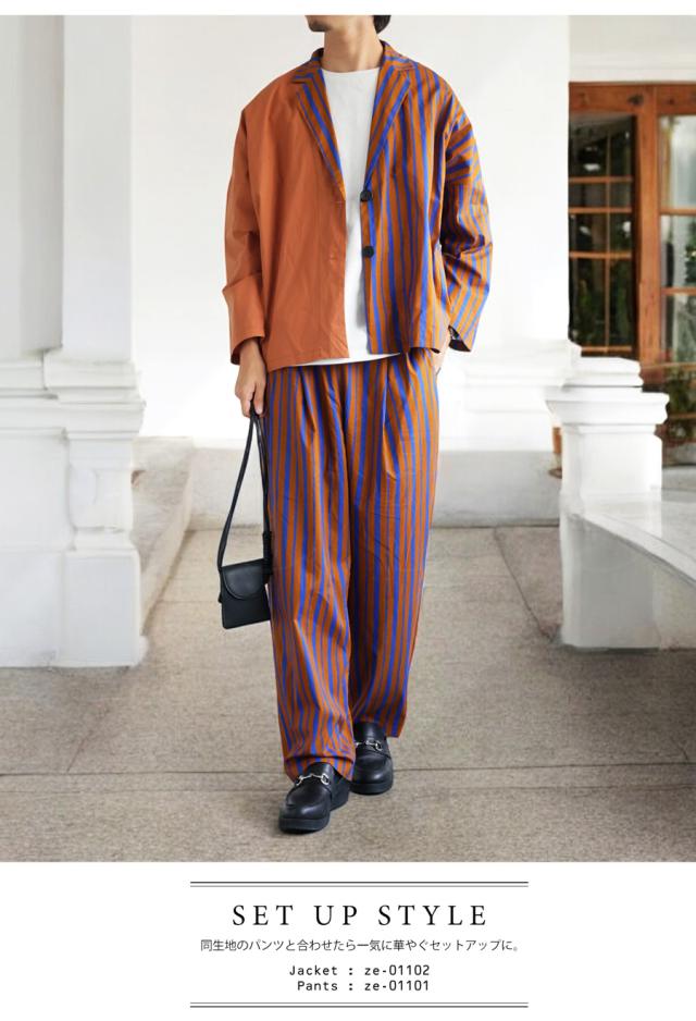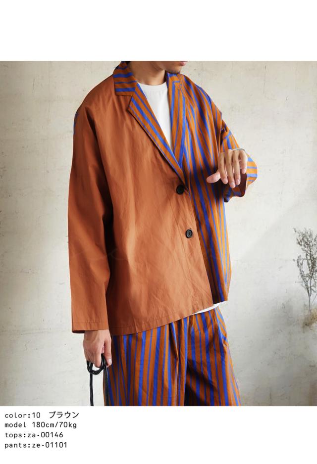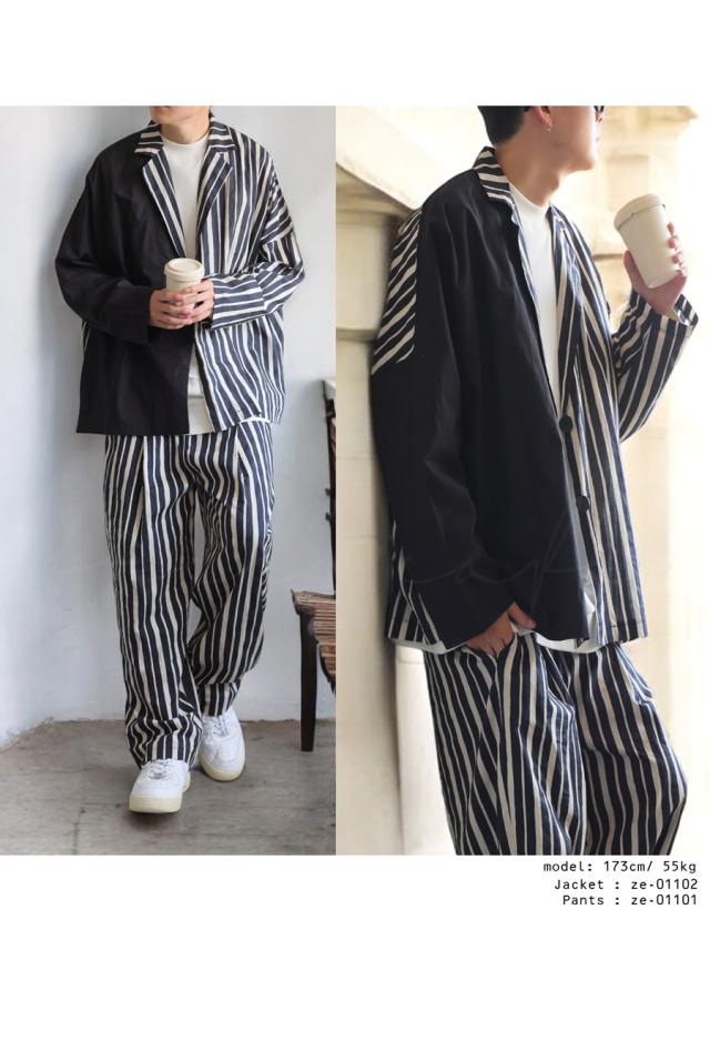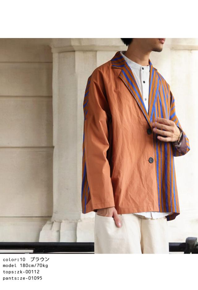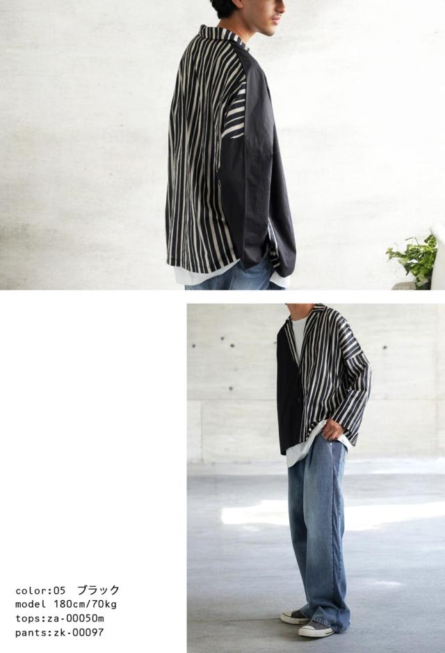 ze-01102z 羽織り セットアップ 長袖 テーラードジャケット 襟付き 綿100 柄 無地 切り替え アシメ ゆったり シンプル すっきり ラフ 軽アウター 薄手 重ね着 大きめ ユニセックス