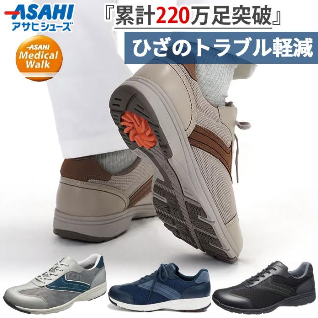 4E幅 ワイド アサヒシューズ メンズ メディカルウォーク MS-C ひざ関節を守る理想的な歩行をサポート ウォーキングシューズ スニーカー 旅行 幅広 散歩 ブラック 黒 グレー ネイビー 送料無料 asahi shoes
