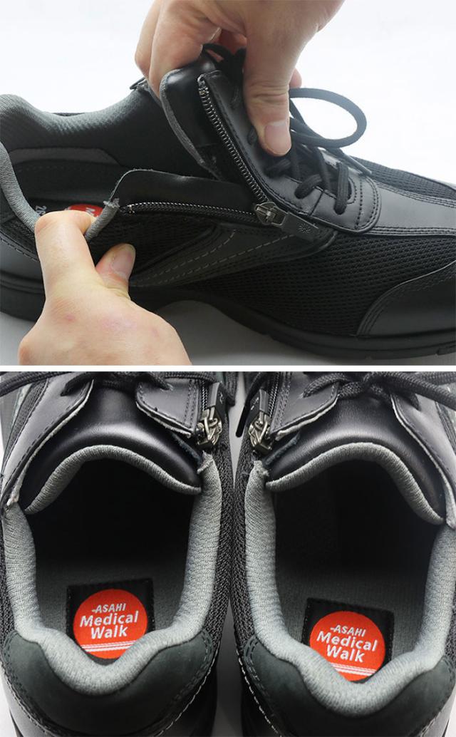 内側ファスナー付きで、日々の脱ぎ履きがカンタンです。