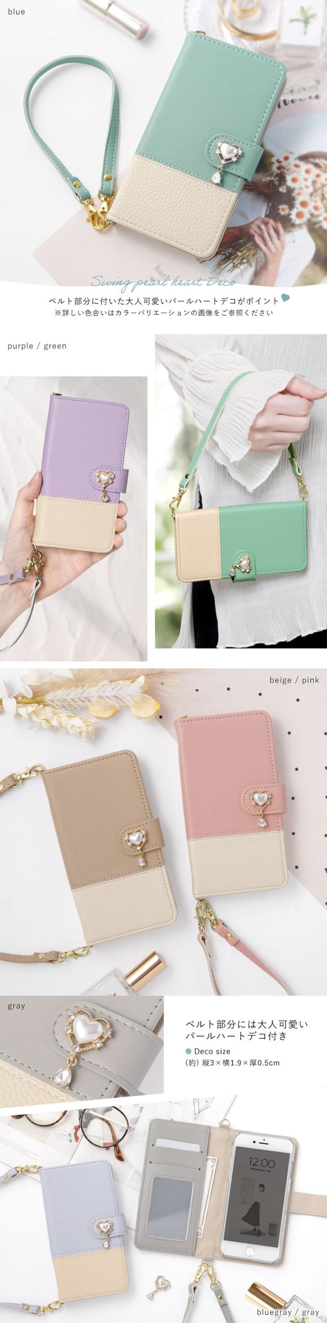 どんなファッションにも合わせやすいニュアンスカラーの手帳型スマホケースが全7色×スウィングパールハート