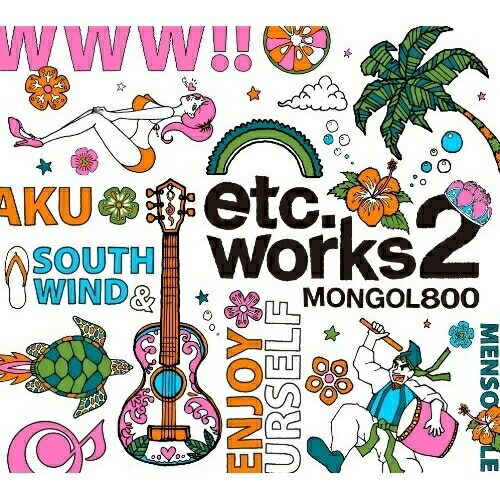 <強力>2008年に発売された第1弾作品から3年。今年でバンド結成13年目を迎える≪モンゴル800≫が、コラボレーション楽曲や、トリビュートアルバムへの提供曲、さらにタイアップ楽曲、カバー、新曲などを収録した企画盤「etc.works」第2弾をリリース!!全12曲からなる本作は、ルイアームストロングの歌唱でもお馴染みの「What a Wonderful World」や映画主題歌でもお馴染みの「Oh Pretty Woman」などの洋画楽曲の新録カバーに加え、「涙そうそう」(BEGIN)、「こいのうた」(GO!GO!7188)、「おりこうさん」(The Boom)などのトリビュートアルバムへの提供カバー、TVアニメ「スティッチ!」の主題歌タイアップ楽曲として使われた「南風と太陽」、Q:indiviとのコラボ楽曲「hanabi」、更にオリジナル新曲2曲などバラエティーに富んだ内容となっており、モンパチのコアファンはもちろん、ライトユーザーでもタップリ楽しめる1枚に!!