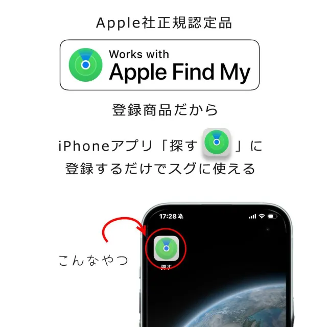 | 対応アプリ | Apple Find My(iPhoneにインストールされています) |
