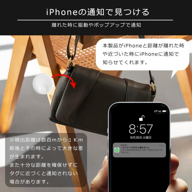 | 位置追跡デバイス - スマートタグ 【Nタグ】 探し物が見つからないとき、もう心配する必要はありません! スマートタグNタグはあなたの貴重品を簡単に追跡できるスマートデバイスです。 鍵、バッグ、財布、さらにはペットの首輪に取り付けることで、どこにあっても見つけ出すことができます。 ■高精度位置追跡■ Appleの「探す」アプリを使用して、Ntagが取り付けられたアイテムの正確な位置を瞬時に確認できます。 ■簡単な設定■ iPhoneに近づけるだけで、数秒でペアリングが完了します。 ■音で通知■ 紛失したアイテムが近くにある場合、NTagから音を鳴らして見つけることができます。 ■プライバシーとセキュリティ■ NTagの位置データと履歴はエンドツーエンドで暗号化されており、ユーザーのプライバシーを守ります。 ■バッテリー交換可能■ 約1年間持続するCR2032コイン電池を使用しており、簡単に交換可能です。 |