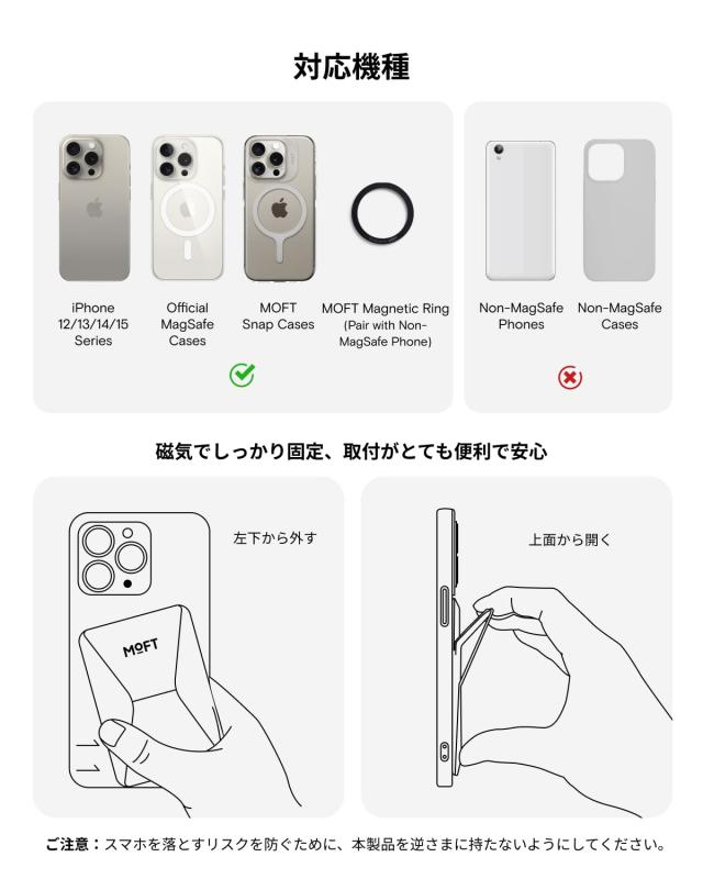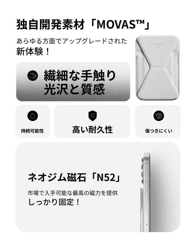 MOFT 耐久強化版 Snap-On スマホスタンド MOVAS? iPhone 16 / 15 /14/13/12シリーズ対応 カードケース スマホグリップ 磁力強化 MagSafe対応 マグネット カード収納 薄型軽量 折り畳み式 持ち歩き便利 ミニマリスト ライフスタイル