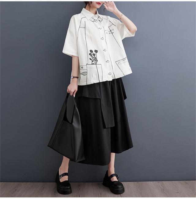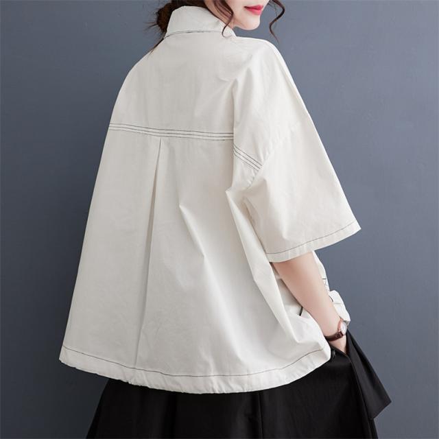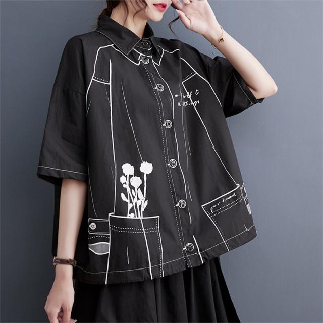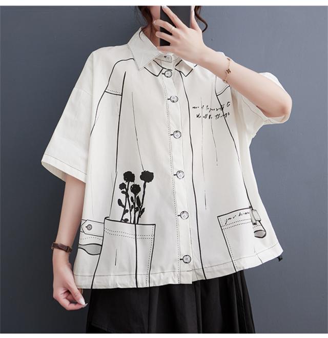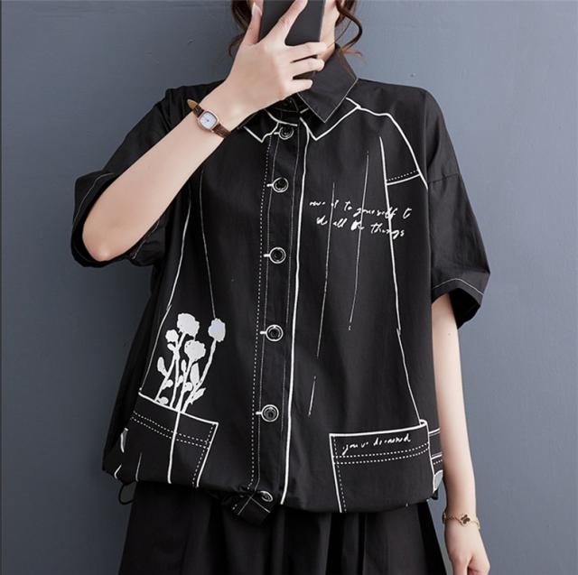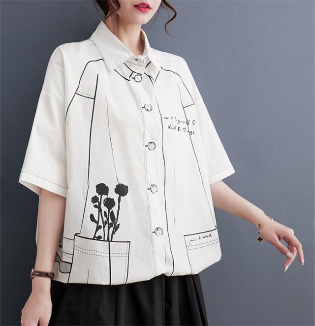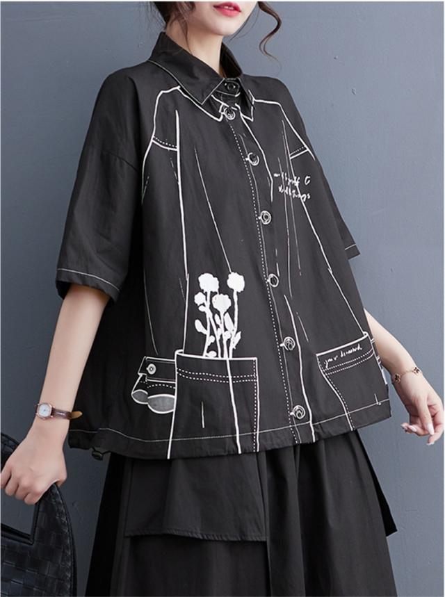 夏シャツ ブラウス レディース トップス 羽織り 五分袖 プリント オーバーシャツ 気分に合わせて着こなし自由 程よく大人カジュアルに 清潔感たっぷり